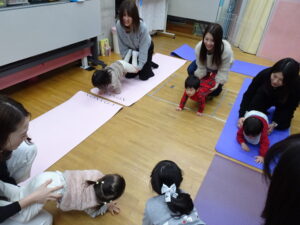 可愛いお歌に合わせて、リズムを取ったり、体を動かして遊んでいます。
