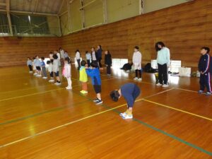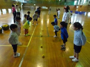 テニスコートのチームのお友達もみんな、体育館で練習しました。