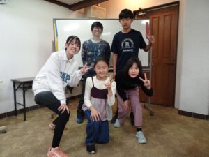 先生方の紹介、お部屋の仲間のペアを決め、テニスのチームで写真を撮りました。