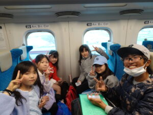 京都組は京都駅から、東京組は品川駅から、全員そろって元気に出発しました。