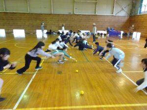 テニスコートのチームのお友達もみんな、体育館で練習しました。