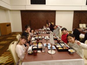 先生方の紹介、お部屋の仲間のペアを決め、テニスのチームで写真を撮りました。