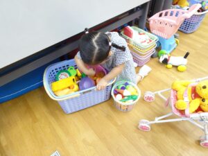 自由遊びの時間はなるべく声をかけずに、一人遊びが充実するように心がけています。
