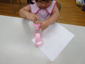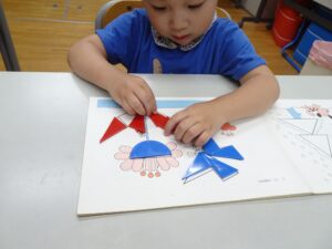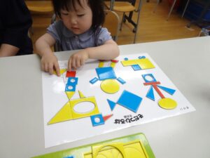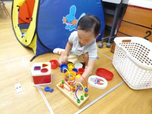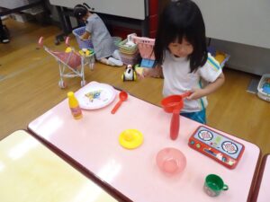 自由遊びの時間はなるべく声をかけずに、一人遊びが充実するように心がけています。