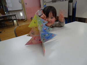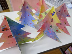 今年は、ツリーのオーナメント作りと、モビール作り。