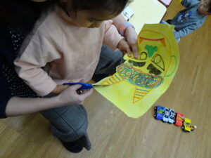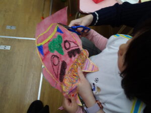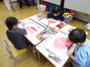 えのぐうやクレパスを使って、一緒に色を塗りました。